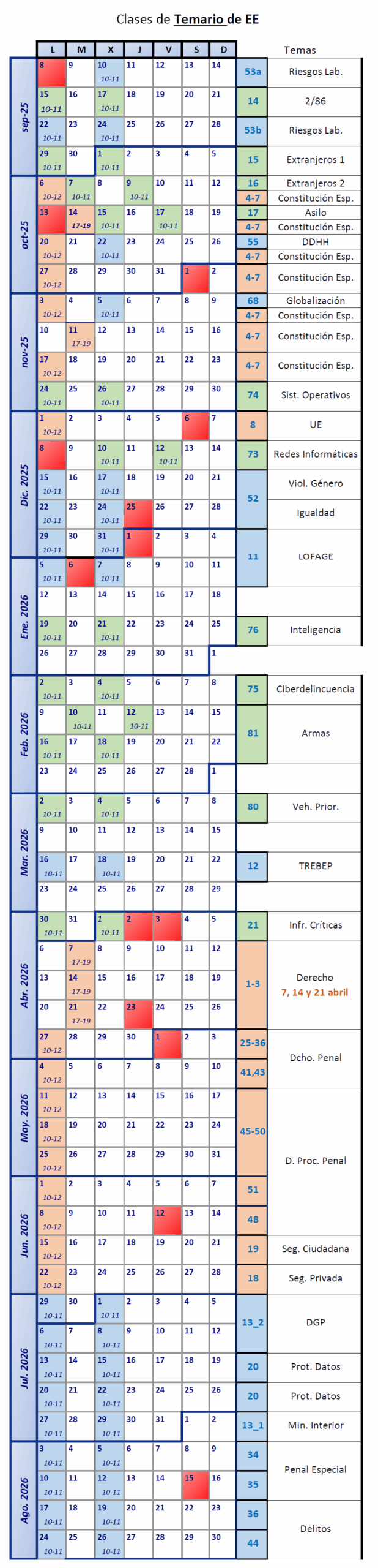 Cada mes se ven entre 6 y 8 temas e incluye: