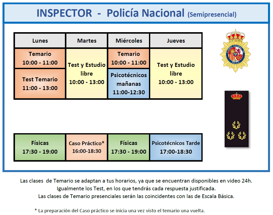 Físicas impartidas por Inspector en activo (preparador físico de los GOES y de la Escuela de Policía).